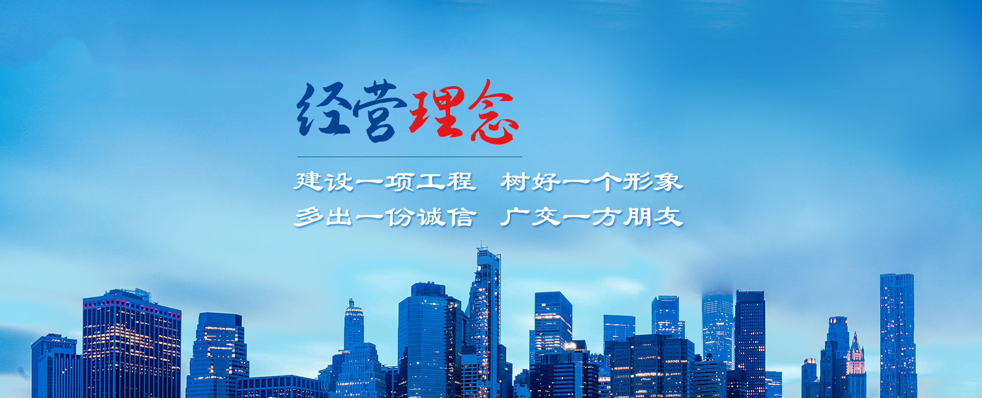 公司以建造合格建筑產(chǎn)品、助力國(guó)家建設(shè)為使命,以構(gòu)建幸福企業(yè)為愿景。公司深知助力國(guó)家建設(shè)為使命所擔(dān)負(fù)的責(zé)任,故以“如履薄冰、如臨深淵、高調(diào)精細(xì)做事、低調(diào)謙虛做人”為工作理念,建立了完善的管理制度和質(zhì)量保障體系,以人為本,構(gòu)建和諧環(huán)境。公司牢固樹(shù)立安全意識(shí)、文明意識(shí)、質(zhì)量意識(shí)、環(huán)境意識(shí)和精品意識(shí)。在公司質(zhì)量管理過(guò)程中貫徹“雙百”方針:即工程合格率100%,客戶滿意率100%。以“建設(shè)一項(xiàng)工程,樹(shù)好一個(gè)形象,多出一份誠(chéng)信,廣交一方朋友”為公司經(jīng)營(yíng)理念。